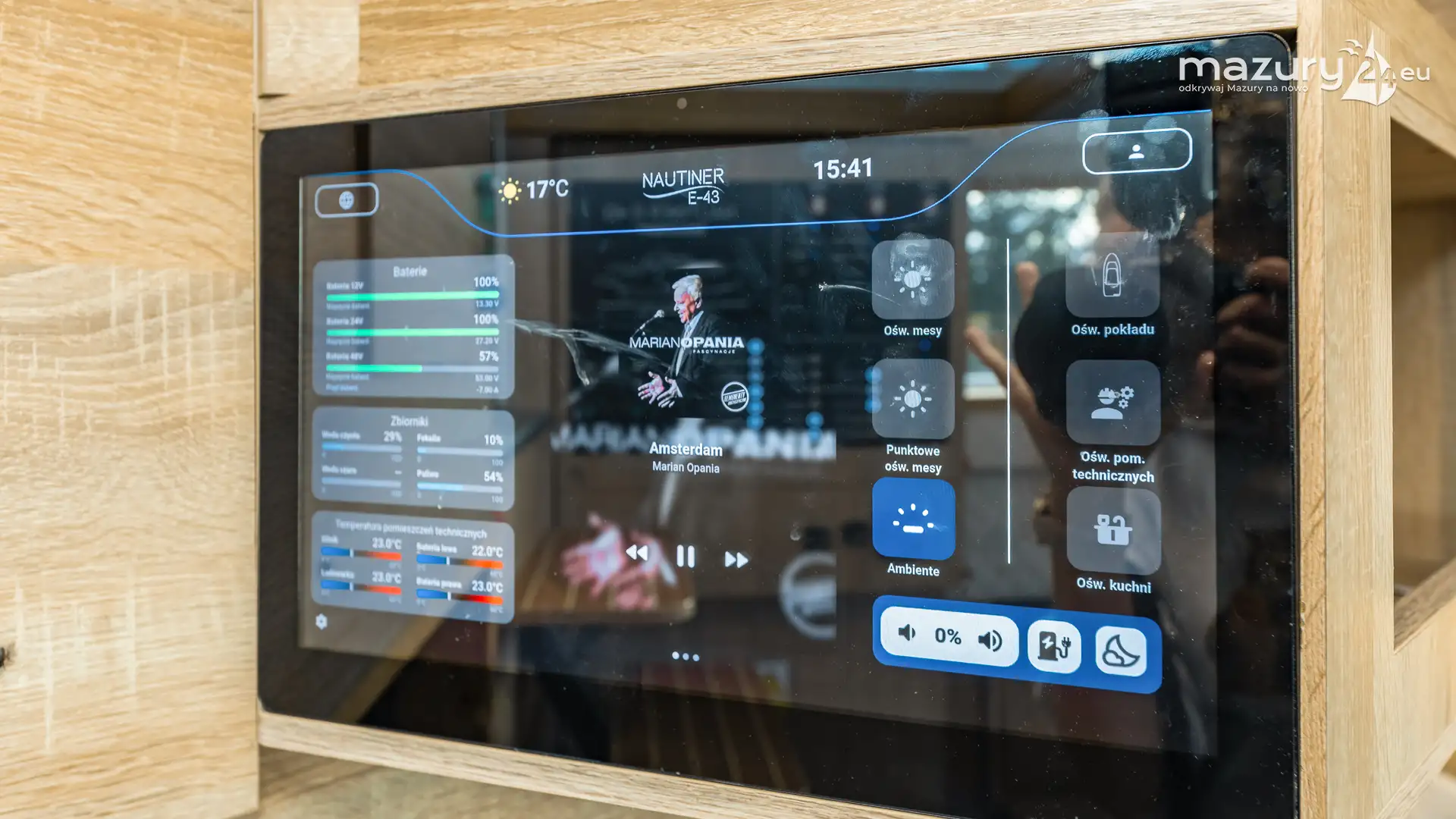 Nowoczesny charakter jednostki podkreśla system zarządzania pokładowego YachtOS. Integruje on kontrolę kluczowych parametrów – od stanu baterii, przez zużycie energii, po systemy oświetlenia i instalacje pokładowe. Intuicyjny interfejs upraszcza obsługę i sprawia, że jacht jest przyjazny również dla użytkowników bez dużego doświadczenia technicznego.