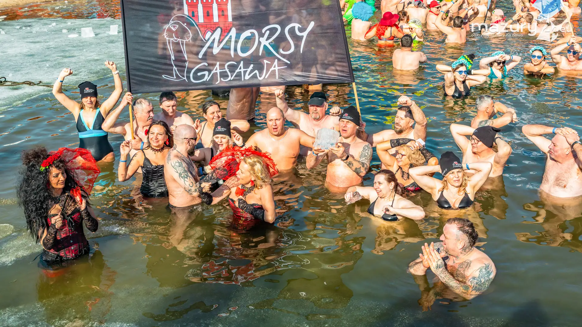Centralnym punktem zlotu była oczywiście wspólna kąpiel w Jeziorze Mikołajskim. W lodowatej wodzie zanurzyły się setki uczestników – zarówno doświadczeni morsowie, jak i osoby rozpoczynające swoją przygodę z zimowymi kąpielami. Wydarzenie miało w tym roku szczególny charakter, ponieważ wpisywało się w obchody 300-lecia nadania praw miejskich Mikołajkom. Z tej okazji planowano symboliczne morsowanie nawet 300 uczestników, co miało podkreślić jubileusz miasta.