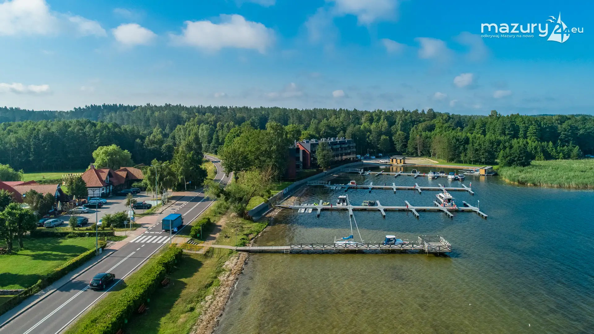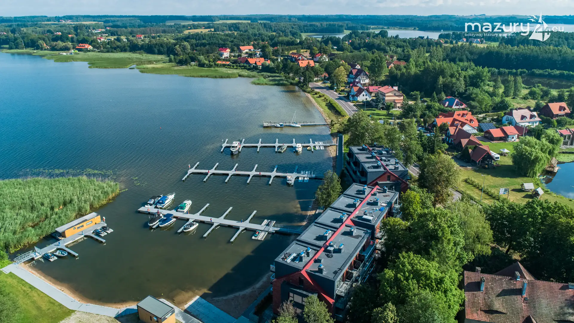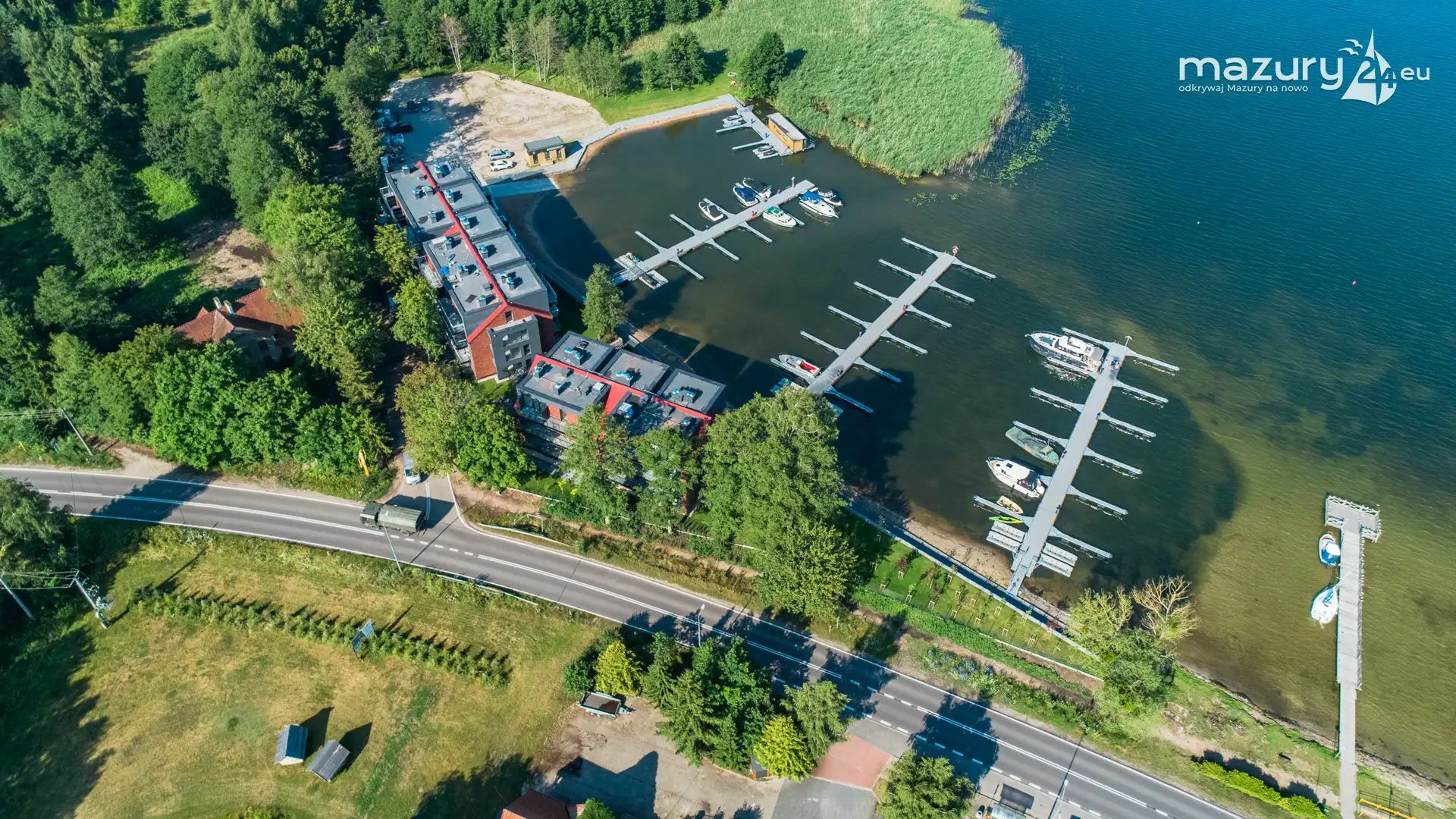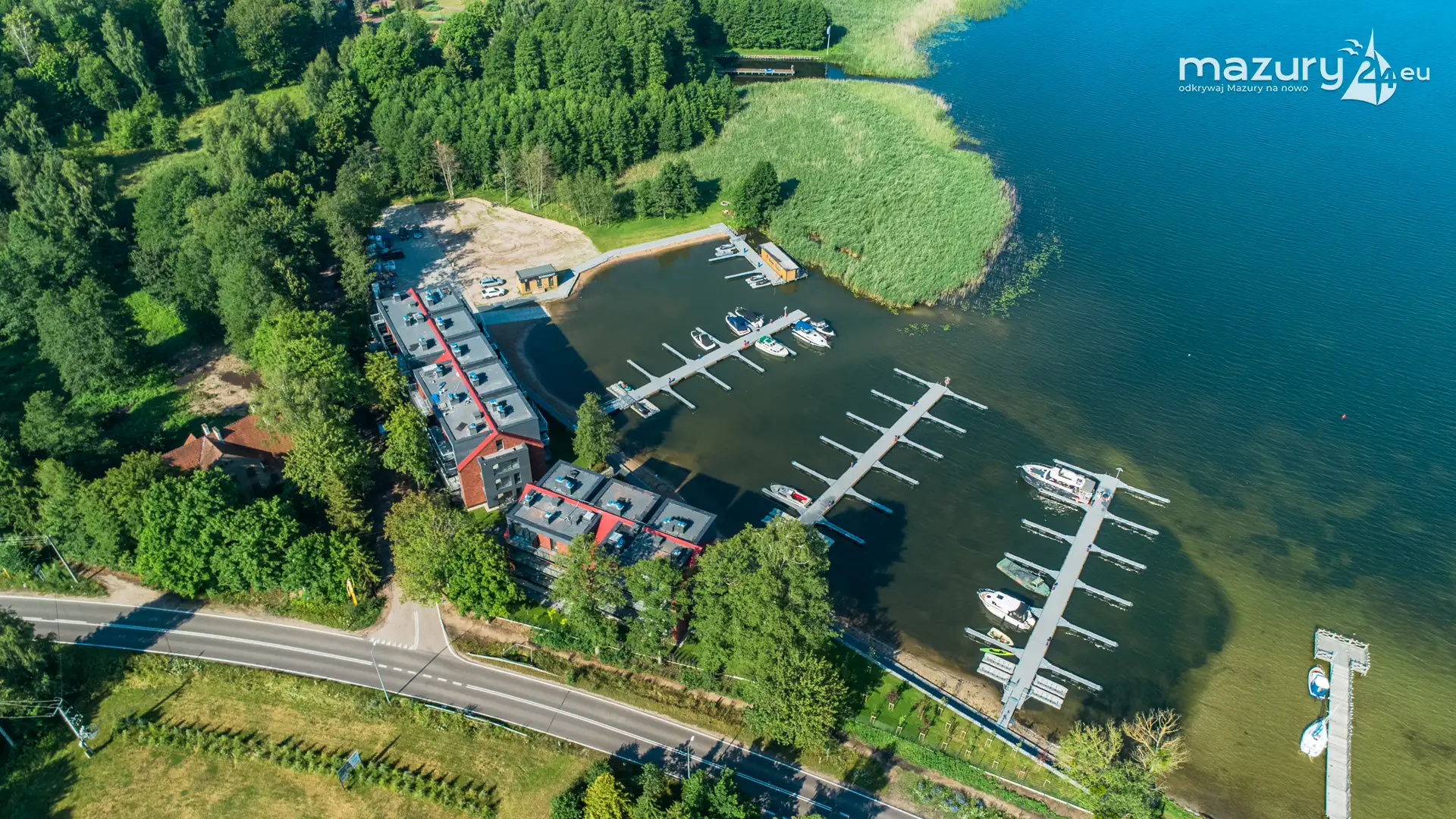 Port Mix Mamry nad jeziorem Mamry z lotu ptaka, lipiec 2025 r.
