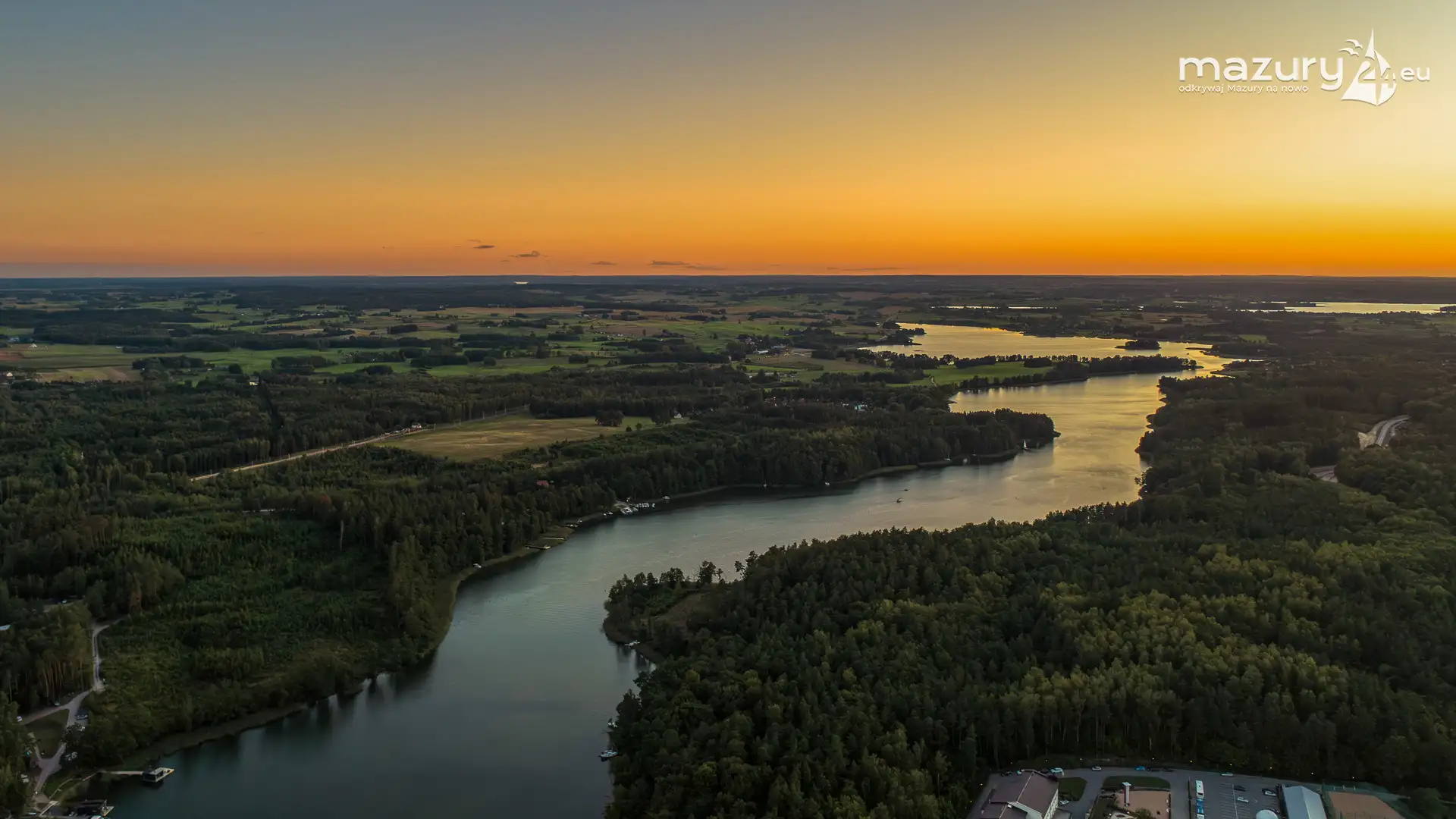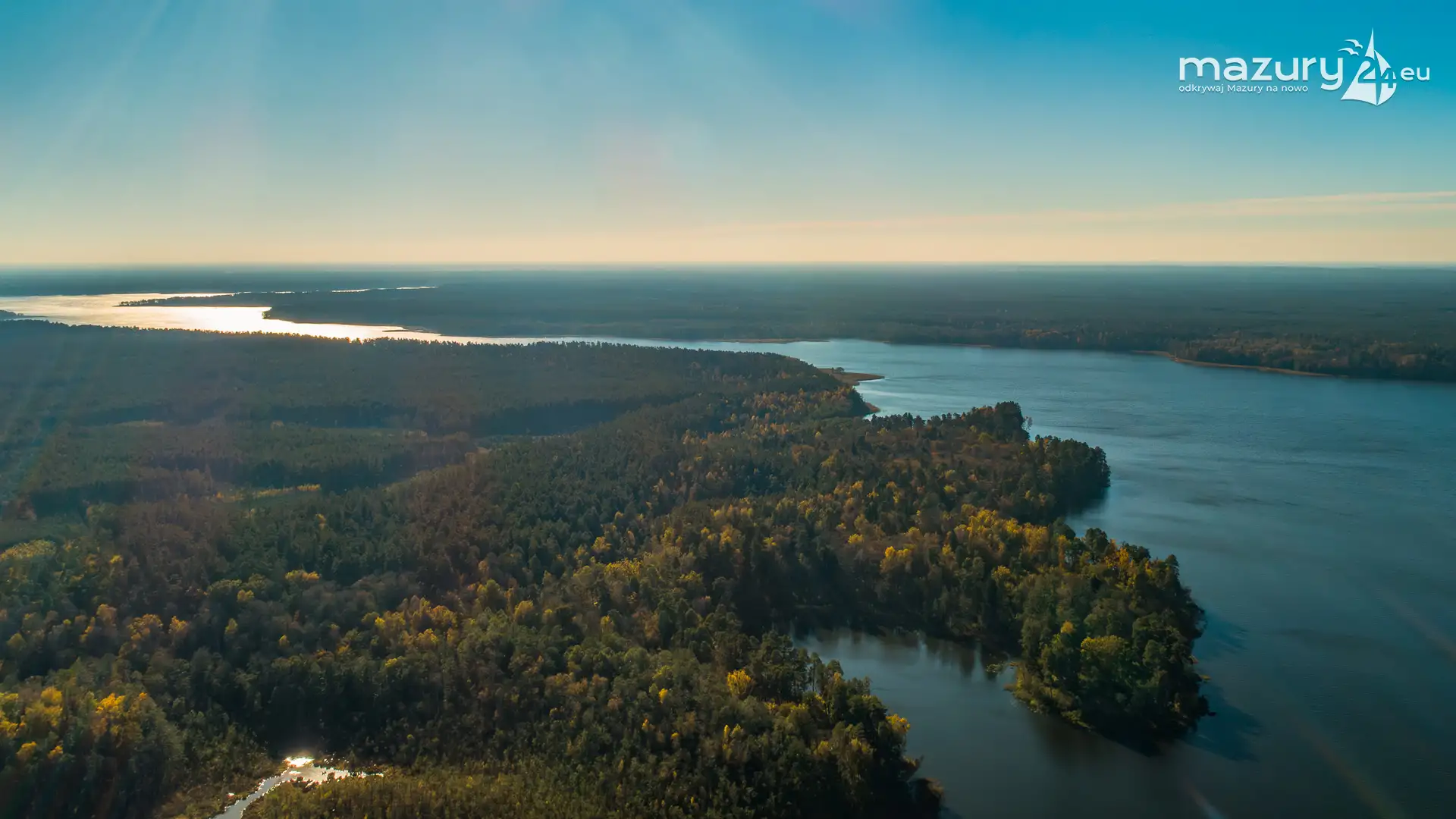 Zachód słońca nad jeziorem Gołdopiwo z drona, listopad 2025 r.