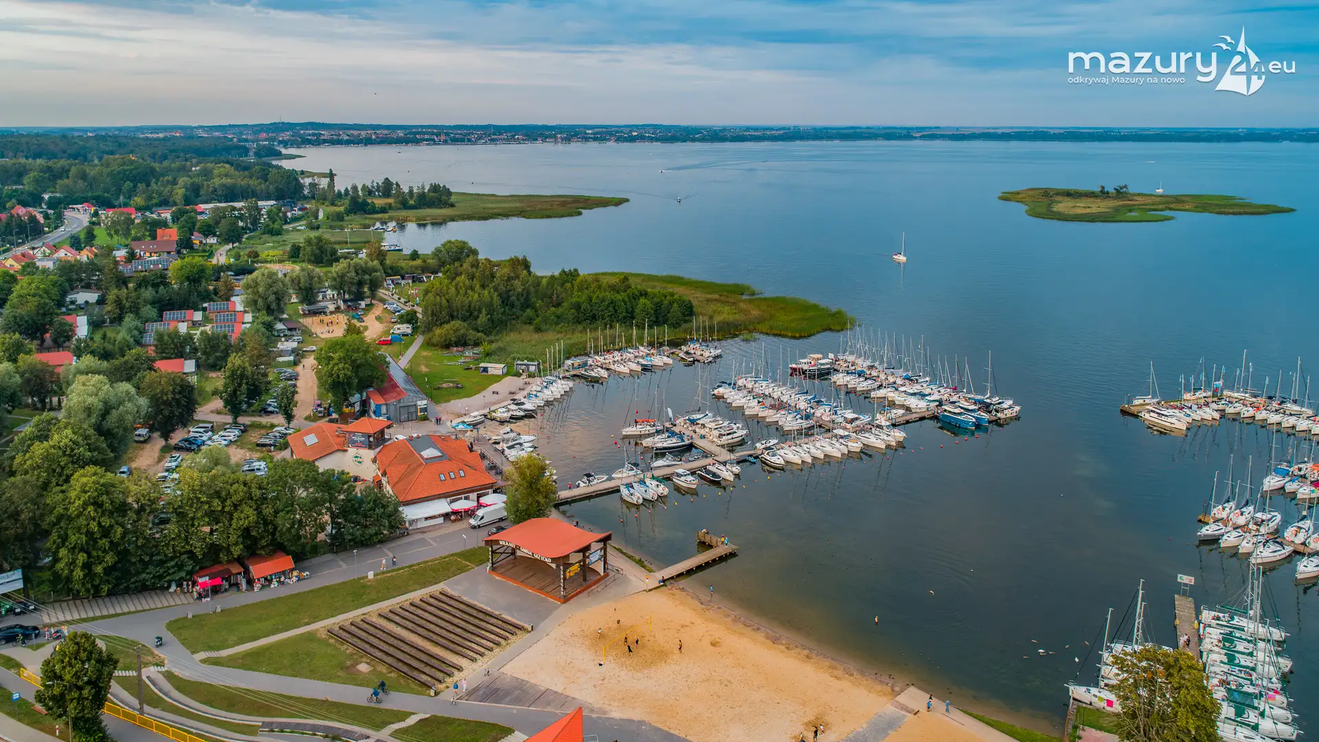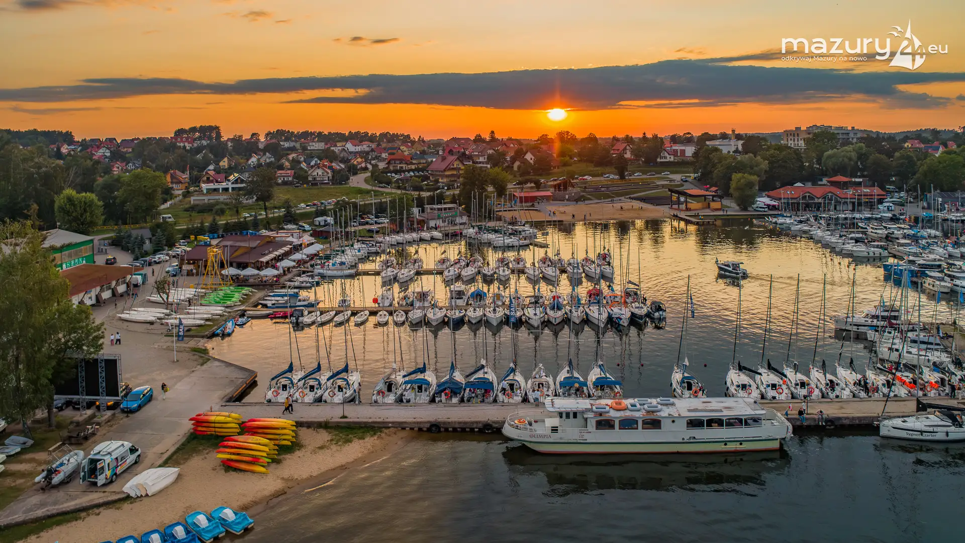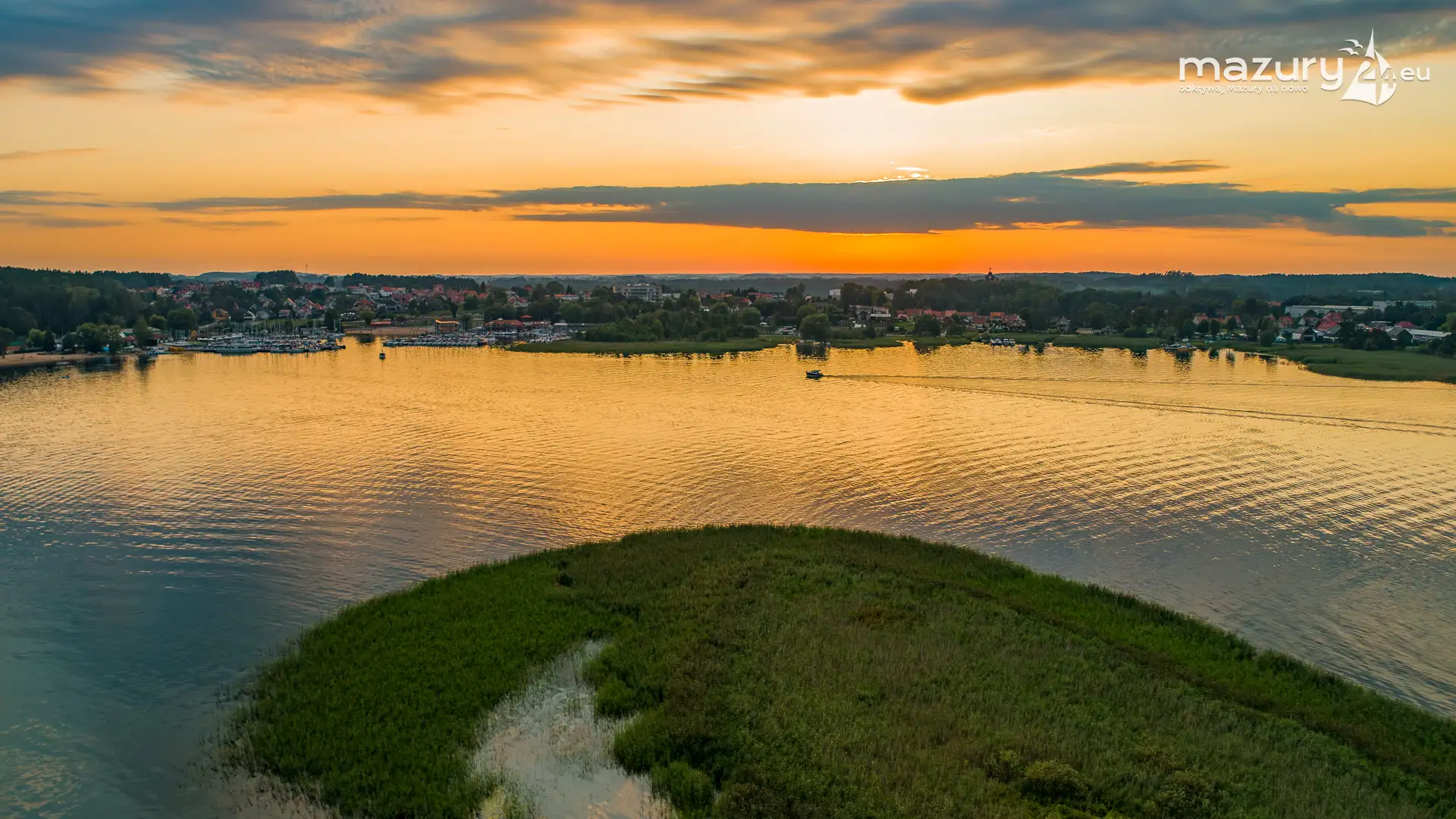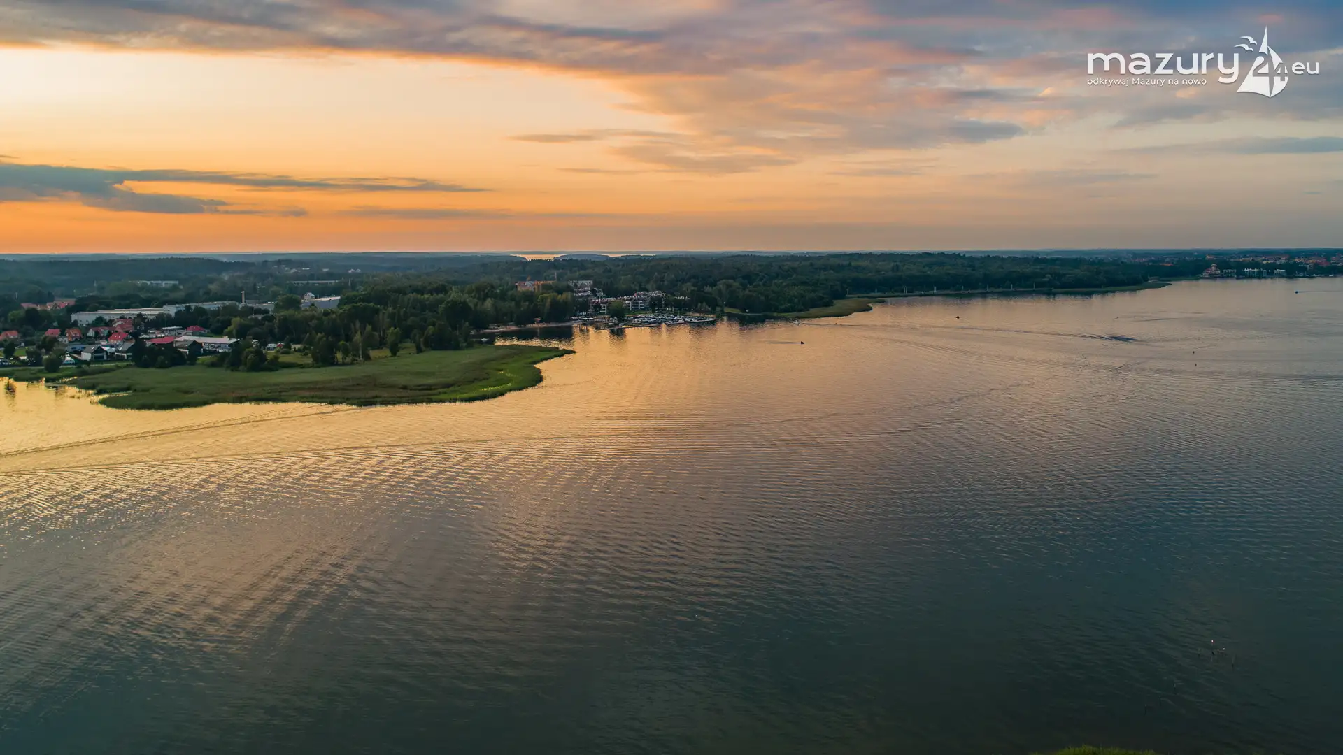 Aby pokazać Wilkasy i Niegocin (zachodni brzeg) o zachodzie słońca, trzeba wzbić się do góry. Kilka dni temu udało nam się polatać i znaleźć kolory zachodu w okolicach portów w Wilkasach. Tej perspektywy nie znacie z poziomu brzegu i pokładu jachtów :)