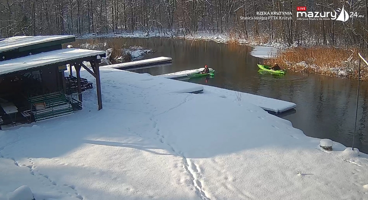 Kamera on-line zamontowana w miejscowości Krutyni nad rzeką Krutynią w Stanicy Wodnej PTTK Krutyń. Kamera pokazuje na żywo pomosty w stanicy oraz piękną Krutynię. Od maja do września powinna pokazywać część ruchu kajakowego na rzece. Kamera nie prowadzi rejestracji obrazu oraz nie przekazuje dźwięku - została zamontowana dzięki uprzejmości w/w stanicy.